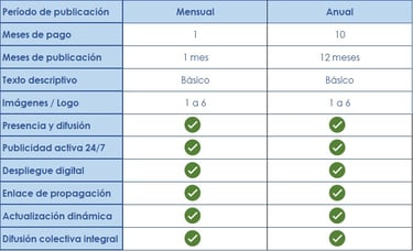 Atractiva inversión publicitaria. Acceso a interesantes tarifas publicitarias mensuales, siendo la tarifa de inversión anual la más interesante para su proyecto publicitario.