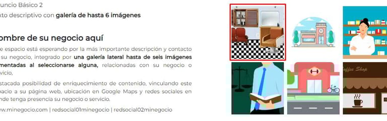 Integración de su anuncio en un banner publicitario, de página de inicio o en la seccion del giro que le corresponda.